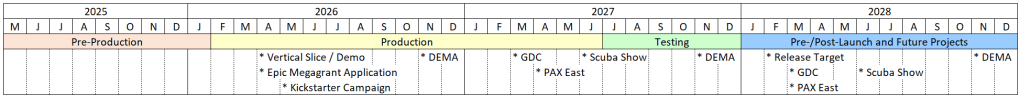 As a project without any current revenue (and mounting expenses), we are looking at an application for a MegaGrant and a Kickstarter campaign shortly after completing the Vertical Slice / Demo in Spring ‘26. If you think this project looks cool, please spread the word and help build the excitement leading to this campaign!